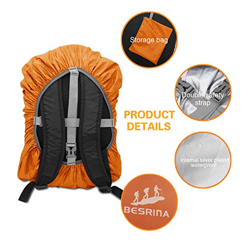 Specification: Besrina Regenhoes voor rugzak (15-90 l), verbeterde antislip riem met gekruiste gesp en reflecterende waterdichte rugzakhoes voor wandelen, kamperen, reizen, fietsen