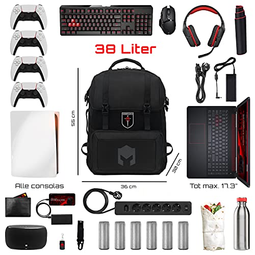 Specification: CATURIX CUMBATTANT – Gaming-rugzak voor laptops en consoles tot 17,3″, waterafstotende rugzak met een volume van 38 l, zwart