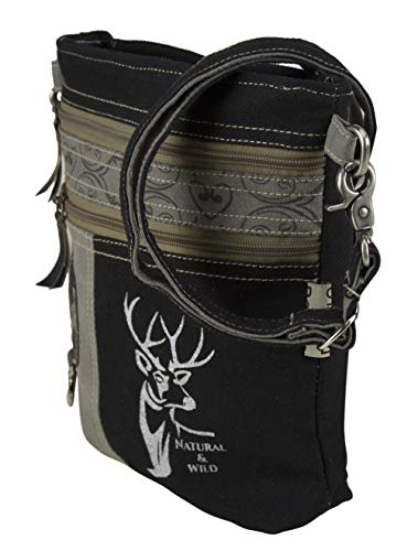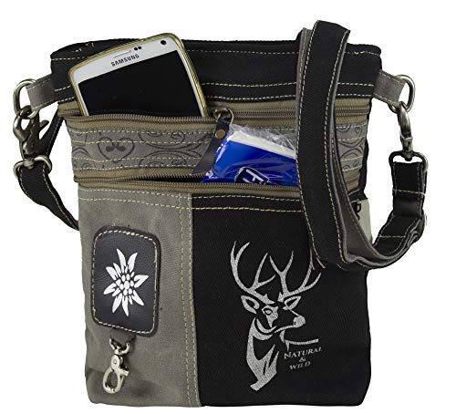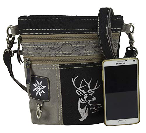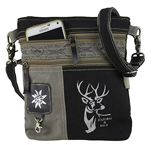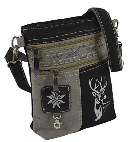Domelo Klederdracht dames kleine klederdrachttas dirndltas schoudertas vrouwentas handtas Oktoberfest tas kleine damestas canvaas tas hert ontwerp zwart