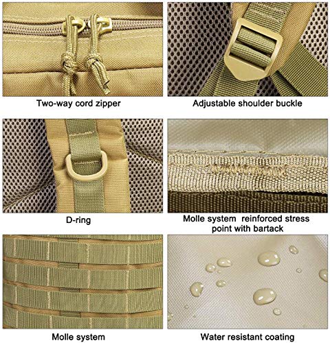 Bijgewerkt SBS Zipper Version: Deze bijgewerkte versie is voorzien van SBS ritsen, biedt duurzame prestaties. Deze militaire tactische rugzak is gemaakt van 1000D polyester stof, rimpelbestendig en vormvastheid.