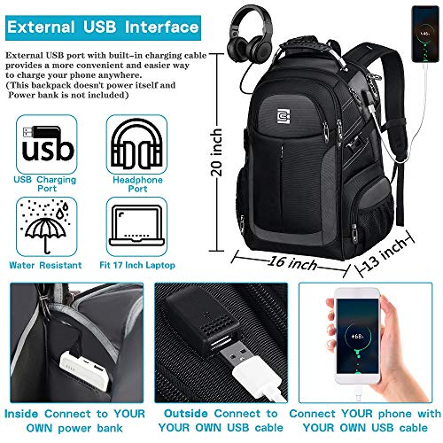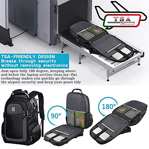 ★ TSA VRIEND & MULTIDOEL: Met een TSA goedgekeurd tech compartiment, bescherm uw 17″ laptop en iPad binnen aangewezen gewatteerde zakken, houd hem gewoon plat en help u de TSA controlepunten te versnellen zonder dat u uw waardevolle laptop uit de veiligheid van de rugzak hoeft te verwijderen; Extra grote rugzak is een geweldige metgezel voor buitenactiviteiten, deze TSA rugzak met USB-poort is perfecte reisgeschenken voor mannen vrouwen naar internationale reizen, vakantie in het buitenland, camping, wandelen, wandelen, wandelen, wandelen ing, trekking, bergbeklimmen, weekendje weg