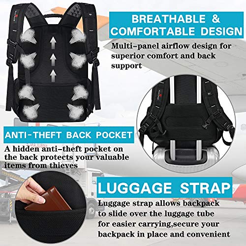 ★ PREMIUM MATERIAAL & COMFY: Gemaakt van waterbestendig en duurzaam polyester stof met metalen ritsen; Comfortabel luchtstroomrugontwerp met dikke maar zachte geventileerde vulling met meerdere panelen, geeft u maximale rugsteun; Ademende, verstelbare schouderbanden met borstband om de stress van schouders te verlichten; Stevige handgreep aan de bovenkant voor een lange tijd doorzetten; Serveer je goed en extra grote reisrugzak, schoolboekentas, professionele kantoorwerktas, usb oplaadtas voor mannen, vrouwen, tieners, volwassenen