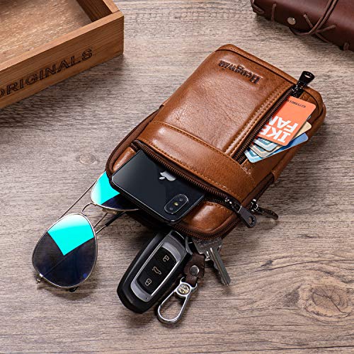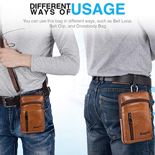 hengwin Leren schoudertas voor heren, kleine mobiele telefoon tas mannen heuptas verticale handtas heuptas