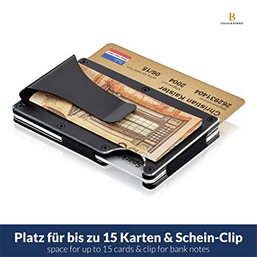 COMPACT EN SPACIOUS – Geen gesjouw meer met dikke portemonnees! De praktische kaarthoes van LOGAN & BARNES is slank en past in elke broekzak. Het biedt ruimte voor maximaal 15 kaarten en bevat zelfs een clip voor bankbiljetten.