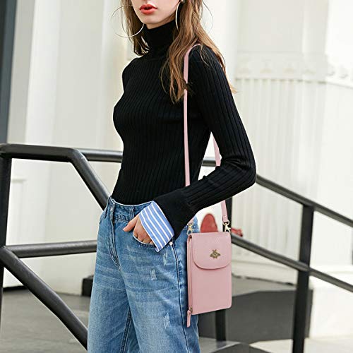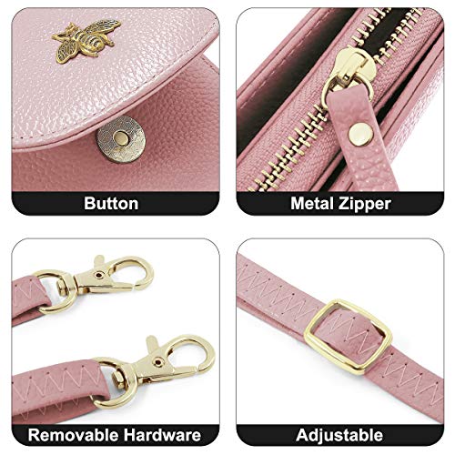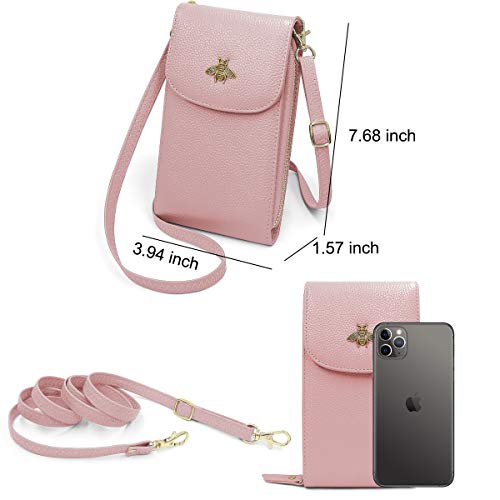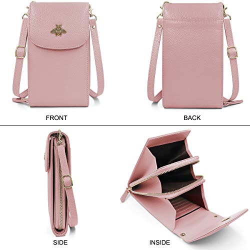 Specification: HNOOM Crossbody Telefoontas Vrouwen Echt Lederen Telefoontas Kleine Mobiele Telefoon Crossbody Schoudertas Portemonnee met 8 Kaartsleuven Multi Compartiment Telefoon Portemonnee Tas met Schouderriem, roze, L