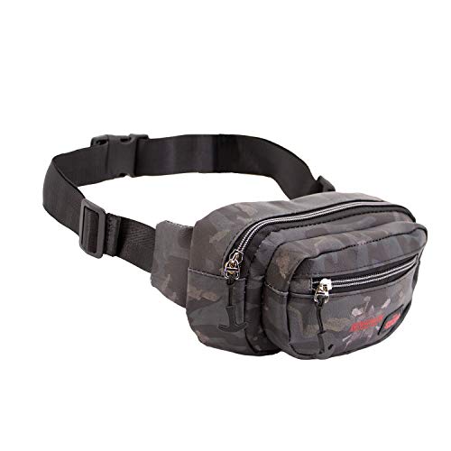 Bum tas met een uniek hoofdvak en voorvak. Binnenvoering en verstelbare tailleband van 120 cm.