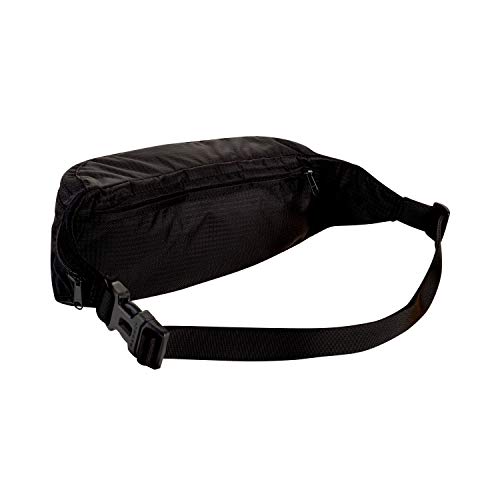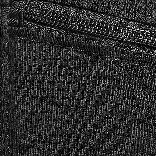 De doordachte heuptas heeft aan de buitenkant twee zakken met ritssluiting en een vak met klittenband, binnenin in het grote hoofdvak een ritsvak en een vak voor waardevolle spullen.