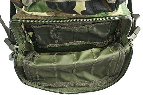 Bovenmateriaal: 100% polyester, polyvinylchloride gecoat. Voering: 100% polyester. Voering: EVA-schuim (260 resp. 550 g/m²). Inhoud: ca. 20 l. Afmetingen: 42 x 20 x 25 cm. Gewicht: circa 1.100 g. – gewatteerde rug – ergonomisch gevormde gevoerde schouderbanden, ca. 5 cm breed, in lengte verstelbaar – oogjes voor extra bevestiging van materiaal – in lengte verstelbare buikriem met snelsluiting – draaggreep – 2 grote vakken met diverse rits- en netvakken – voorvak met organizer en extra vak met ritssluiting – alle vakken met 2-weg rits – volumeregeling en bagagefixatie met zijdelingse compressiebanden. diverse Molle-opnamPunten: geïntegreerd vak met klittenband voor hydropack.