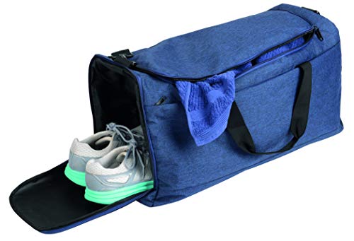 Sporttas Leisure, met schoenenvak aan de zijkant: ruim hoofdvak met ritssluiting, groot voorvak met ritssluiting, zijvak netvak, verstelbare en afneembare schouderriem met schoudervulling, versterkte handgrepen.