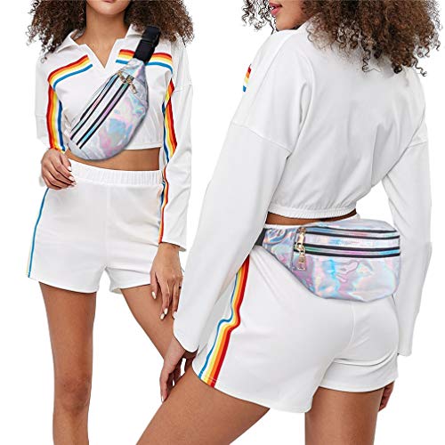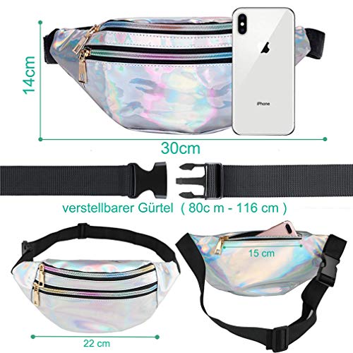 Modieus en praktisch: metalen ritssluiting in regenboogkleur en reflecterend oppervlak toont verschillende kleuren. De chique uitstraling met glanzende kleur maakt de heuptas geschikt voor festivals, feestjes, carnaval of als modieus accessoire