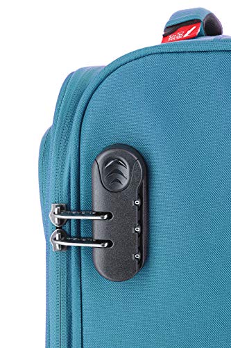 Inhoud levering: 1 x reiskoffer, handbagage, afmetingen 52 x 39 x 20 cm, voldoet aan IATA boordtrolley, afmetingen 39 liter; gewicht 1,9 kg; materiaal polyester; kleur turquoise; met combinatieslot