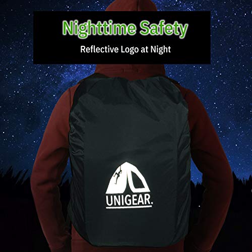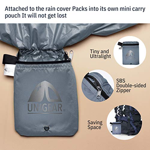Waterdicht en slijtvast:De Unigear rugzak-regenhoes bestaat uit waterdicht, scheurbestendig nylon. De maximale waterdruk bedraagt 5000 mPa. Het houdt je rugzak bij regen en sneeuw droog.