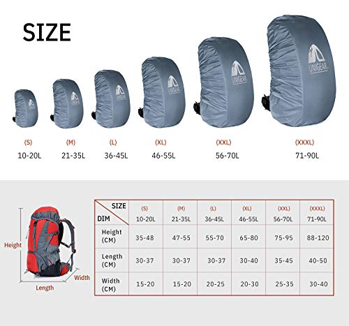 Specification: Unigear Regenbestendige rugzakhoes, 10-90 l, waterdichte beschermhoes, stofdicht, slijtvast, duurzaam, voor kamperen, wandelen, reizen, fietsen