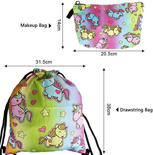 Specification: URAQT 23 Pcs Unicorn Trekkoord Rugzak Cadeaus voor Meisjes/Make-up Tas/Scrunchies/Portemonnee/Sleutelhangers/Armbanden als Feestartikelen, Bloemkleur