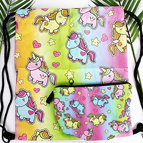 URAQT 23 Pcs Unicorn Trekkoord Rugzak Cadeaus voor Meisjes/Make-up Tas/Scrunchies/Portemonnee/Sleutelhangers/Armbanden als Feestartikelen, Bloemkleur