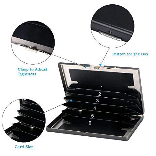 Specification: Vicloon Metalen Kaarthouder Portemonnee, Ultradunne Roestvrijstalen Metalen Portefeuilles RFID-blokkerende Credit Card Houder voor Heren en Dames, Kaartbeschermer Met 6 PVC-slots en Roestvrijstalen Vergrendeling